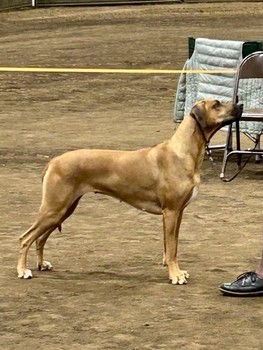 Our first show quality girl, Casey, joined the pack in 2023 and is now a Grand Champion in the CKC show ring. She frequently gets compliments on her healthy coat and overall body condition from judges and breeders alike.